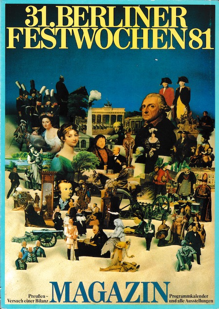 Die Berliner Festwochen selbst, ebenso wie schon die Internationalen Sommerfestspiele, standen ganz im Zeichen der Preußen-Ausstellung. Neben weiteren Ausstellungen – allen voran die als „absichtsvoll hergestellter Kontrapunkt“[13] gedachte Ausstellung „Musée sentimental de Prusse“ im Berlin Museum – wurden unzählige Veranstaltungen – Konzerte, Streitgespräche, literarische Abende, Theateraufführungen – dargeboten, so ein „Kulturlehrpfad der historischen Imagination“ mit dem Kunsttheoretiker Bazon Brock.[14]