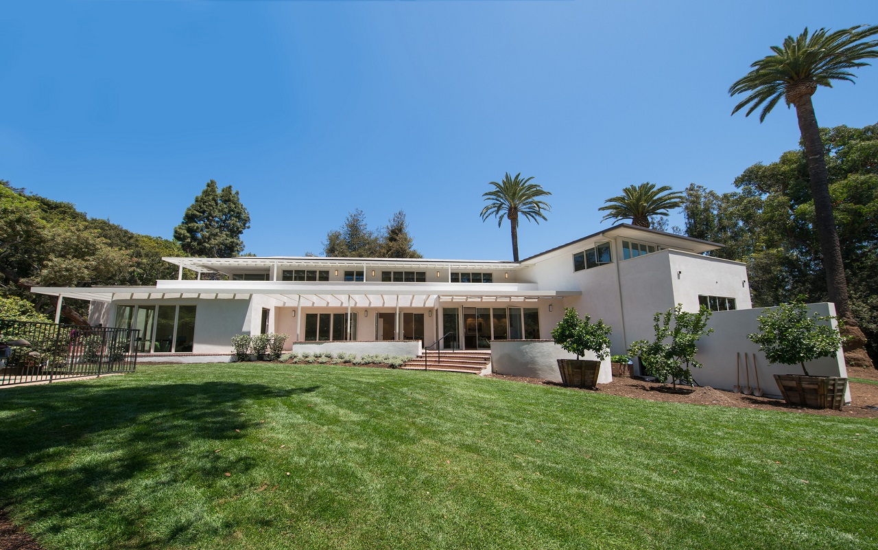 In den Jahren 1941/42 ließen sich die Manns das Haus errichten, nachdem sie zuvor ihr Ostküstenexil in Princeton verlassen hatten, um sich dauerhaft in Kalifornien niederzulassen. Zwei interessante Neuerscheinungen aus dem diesjährigen Herbstprogramm widmen sich der Geschichte des Hauses: zum einen die Erinnerungen des Mann-Enkels Frido an seine Kindheit in dem Haus, die er mit einer aktuellen politischen Botschaft verknüpft, und zum anderen das Fotobuch „Seven Palms“, benannt nach den sieben Palmen, die heute wieder wie zu Lebzeiten Manns im Garten des Hauses stehen.[5] Zehn Jahre lang, bis 1952, war der Ort der Mittelpunkt der Familie Mann, bevor Thomas Mann, seit 1944 US-Bürger, und seine Frau Katia in der McCarthy-Ära die USA verließen und zurück nach Europa zogen. Danach ging das Haus mit seinen fünf Schlafzimmern für die sechs Kinder der Manns und ihre Enkel, die regelmäßig zu Besuch kamen, für fast sieben Jahrzehnte in Privatbesitz über, zeitweise war es vom Abriss bedroht, bis es die Bundesregierung 2016 für 13 Millionen Dollar kaufte, mit dem Ziel, es in einen transatlantischen Debattenort umzuwandeln. Heute hat es ähnlich wie die nahegelegene Villa Aurora, in der Lion Feuchtwanger im Exil lebte, ein Residenzprogramm, das laut Website „Intellektuellen und Vordenkern Gelegenheit zum Austausch untereinander und mit dem Gastland über die großen Fragen unserer Zeit bietet“.[6]