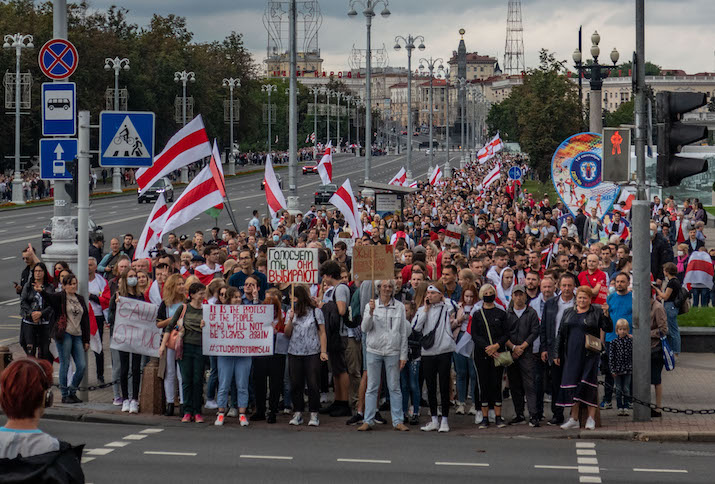 M.A.: Akademiker*innen aller Karrierestufen beteiligen sich maßgeblich an den Protesten, sowohl an deren Organisation als auch an deren Durchführung. An allen Universitäten des Landes protestieren Studierende. Aber auch Professor*innen sind aktiv. Manche Dozent*innen stellten sich buchstäblich zwischen ihre Studierenden und die Spezialkräfte, wenn diese anrückten, um Studierende zu verhaften, so etwa der Archäologe der Minsker Staatlichen Universität Wadim Belewez. Andere, wie die Dekanin der Fakultät für Computersysteme und –netzwerke der Belarusischen Staatlichen Universität für Informatik und Radioelektronik (BGUIR), Marina Lukaschewitsch, kündigten, weil sie keine Säuberungen innerhalb der Studierendenschaft vornehmen wollte. Lehrende der Minsker Linguistischen Universität veröffentlichten eine bewegende Videobotschaft, „Wir sind mit Euch solidarisch“, zur Unterstützung der protestierenden und verhafteten Studierenden. Im Süden des Landes, in der Gebietshauptstadt Homel, protestierten wiederum Studierende gegen die Verhaftung des Ökonomie-Professors Wadim Belskij.
