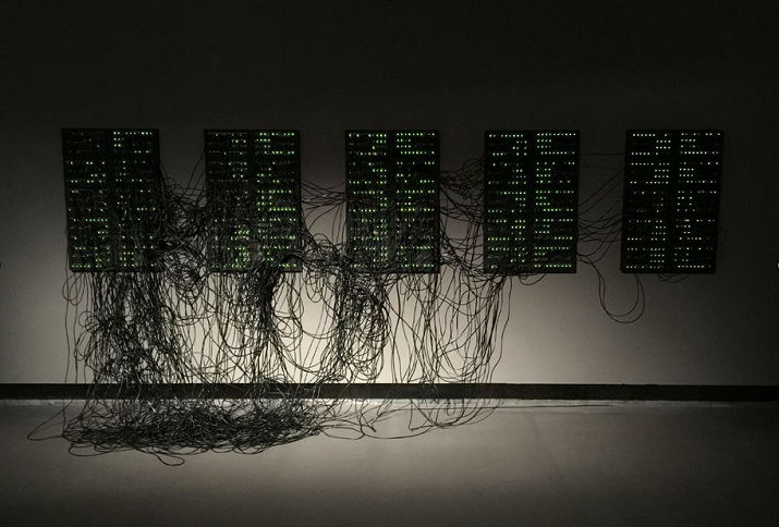 Auf dem Festival selbst stellten verschiedene Künstler im Rahmen der Ausstellung "Alien Matter" die Frage nach der selbstverständlich gewordenen, aber doch fremd gebliebenen Informationstechnologie aus einer gegenwärtigen Perspektive. Ein Großteil der Informationsinfrastrukturen liegt vom menschlichen Auge verborgen im Hintergrund, dazu gehören etwa die Übertragungskabel, Serverfarmen oder Kommunikationssatelliten im Weltall. Diese verborgenen Strukturen sichtbar zu machen, gelang den Künstlerinnen Evan Roth und Addie Wagenknecht. Roth zerrte in der "Burial Ceremony" ganze zwei Kilometer eines Glasfaserkabels ans Licht, die normalerweise tief vergraben unter der Erde liegen, gleichsam "be-erdigt". Wie von Kabeltechnikern routinemäßig in Form einer Acht auf den Boden gelegt, scheinen an dem Kunstwerk die Leibhaftigkeit wie auch die geistige Unendlichkeit des natürlich gewordenen digitalen Raumes auf. Über solche Unterseekabel läuft weltweit ein Großteil des gesamten Datenverkehrs. Verarbeitet werden die Daten in Serverfarmen, eine Referenz darauf bildet die Arbeit der US-Künstlerin Addie Wagenknecht. Ihre Wandskulptur besteht aus fünf großflächigen Platinen, verbunden von Hunderten, ineinander verschlungenen schwarzen Kabeln. Auf den Platinen blinkt eine Vielzahl grüner Statusleuchten im hektischen Takt der Datenpakete. Die Lichter erinnern sie an die Silhouette einer Großstadt aus der Ferne, die von den Kabeln und Platinen mit Daten versorgt wird. Der Clou an der Installation: Sie zeichnet im Hintergrund heimlich den Datenverkehr des W-LAN-Netzwerkes des Hauses der Kulturen der Welt auf, in dem sich die Besucher mit ihren Geräten befinden. Aber statt sie zu speichern und auszuwerten, wie das Unternehmen wie Google oder Geheimdienste wie die NSA gemacht haben, erzeugen die Daten nur das sinnlose Blinken grüner LEDs: scheinbar autonom von menschlichem Handeln und doch mit diesem auf das engste verknüpft. Unlesbar für den Menschen erzeugen sie gleichzeitig ein Gefühl der Überwachung. Fünfzehn weitere Kunstwerke führen die Frage nach technologischer Agency an ganz verschiedenen Sujets aus und erzeugen so einen kohärenten Rahmen. Die Ausstellung "Alien Matter" ist auch über die Transmediale hinaus noch bis zum 5. März 2017 im Haus der Kulturen der Welt zu sehen.