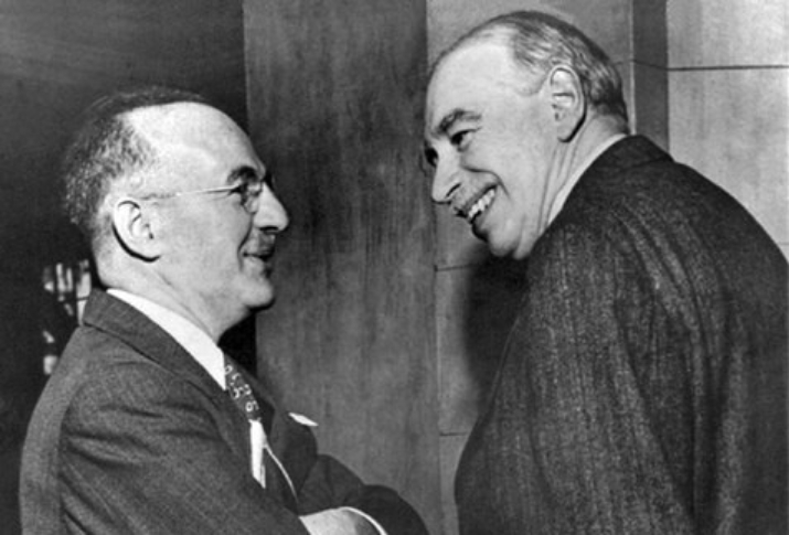 Gleichzeitig markierte das Abkommen von Bretton Woods eine fundamentale Verschiebung der globalen Hegemonie vom britischen Empire hin zu den USA. In den sehr kontroversen Verhandlungen – dem Battle of Bretton Woods (Steil) – rangen zwei ungleiche Partner um die Vormachtstellung ihres Mutterlandes: der weltberühmte britische Ökonom und Intellektuelle John Maynard Keynes stand dem weitgehend unbekannten amerikanischen Technokraten Harry Dexter White gegenüber. Keynes versuchte mit seinem Vorschlag einer International Clearing Union – einer Art Weltzentralbank, die über eine künstliche Weltwährung (den Bancor) internationale Zahlungsbilanzen verrechnen und Finanzmittel von Gläubigern (wie den USA) an Schuldner (wie England) bereitstellen sollte – die prekäre Lage des britischen Empire in der Nachkriegszeit zu stärken.