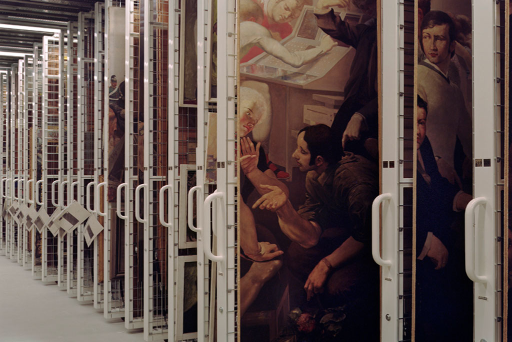 Die Leipziger Fotografin, Margret Hoppe, hält mit Ihrer Kamera die Wege von Kunstwerken aus der DDR fest. Die hier gezeigten Fotos dokumentieren den Weg des Werkes von Werner Tübke „Arbeiterklasse und Intelligenz“. Das Wandbild entstand im Auftrag der SED-Kreisleitung Leipzig zwischen 1969 und 1973. Aufgrund von Umbaumaßnahmen in der Universität Leipzig – Wiederaufbau der Paulinerkirche – musste das Werk abgenommen werden. Damit stellte sich die Frage nach dem Verbleib des Werkes. Sollte es einen neuen Platz in der Universität erhalten oder im Depot „entsorgt“ werden? Über diese Frage wurde öffentlich gestritten und das Werk nahm einen Weg auf sich, der die Unsicherheiten im Umgang mit dieser Kunst aus der DDR spiegelt. Nach einer kurzzeitigen Präsentation im Museum der bildenden Künste in Leipzig ging das Bild, zerlegt in zahlreiche Einzelteile in ein Depot. Demnächst soll es wieder an einem neuen Platz hängen: wieder zentral, in den Räumen der Universität - aber nicht ohne Kritik.