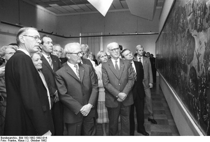 Der Ost-West-Blockkonflikt betraf dabei längst nicht nur die institutionelle Welt des Kunstsystems, in dem er völlig differente Ausformungen desselben in beiden deutschen Teilstaaten schuf, sondern er schlug auch auf die Seite der Kunstproduktion selbst durch. So führte die durchgesetzte Fremdfunktionalisierung der Künste zu einem Großsymbol der Systemauseinandersetzung in einigen Bereichen des Kunstsystems auch zu einer ästhetischen Konfrontation zwischen Ost und West, welche sich, etwa in der Malerei, in einer signifikanten bildpolitischen Konkurrenz zwischen sozialistischer Figuration und westlicher Abstraktion spiegelte. Auffallend ist in der DDR gegenüber anderen staatssozialistischen Gesellschaften die rigorose Vereinseitigung dieser Kunstentwicklung: Während in Polen, Ungarn oder der Tschechoslowakei parallel existierende Kunstformen – etwa auch Formen der in der DDR konsequent verfemten zeitgenössischen „Westkunst“ – und die mit ihnen verbundenen Stilauffassungen und Rollenausprägungen nachweisbar sind, kam es im Osten Deutschlands zur Ausprägung eines fast vollends machtgesteuerten Kunstsystems.