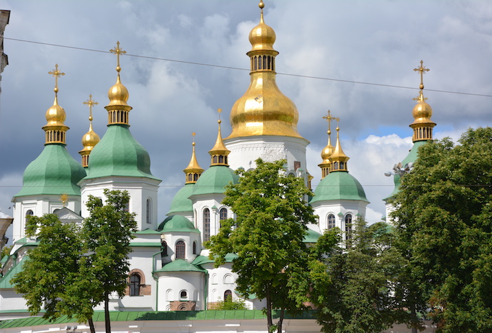 Allergrößte Sorge gilt den bedeutenden Kirchen, Architekturdenkmälern, Museen und Bibliotheken Kiews, die sich im Zentrum der Stadt und oft in unmittelbarer Nähe von Regierungsgebäuden befinden und bei Angriffsgefechten kaum geschützt werden können. So steht die Sophienkathedrale nur einige hundert Meter vom Hauptgebäude des ukrainischen Sicherheitsdienstes SBU entfernt. Diese Kathedrale gehört zum Weltkulturerbe.[5] Ihr Bau, der Hagia Sophia in Konstantinopel nachempfunden, geht auf das 11. Jahrhundert zurück; der heutige Bau im ukrainischen Barock stammt vom Ende des 17. Jahrhunderts. Die Kathedrale bildete das geistliche, politische und kulturelle Zentrum der Kiewer Rus, des ersten ostslawischen Großreichs des Mittelalters. Sie war der Krönungs- und Bestattungsort der Kiewer Fürsten, in ihr fanden wichtige Staatszeremonien statt und die Kiewer Volksversammlung tagte an diesem Ort.