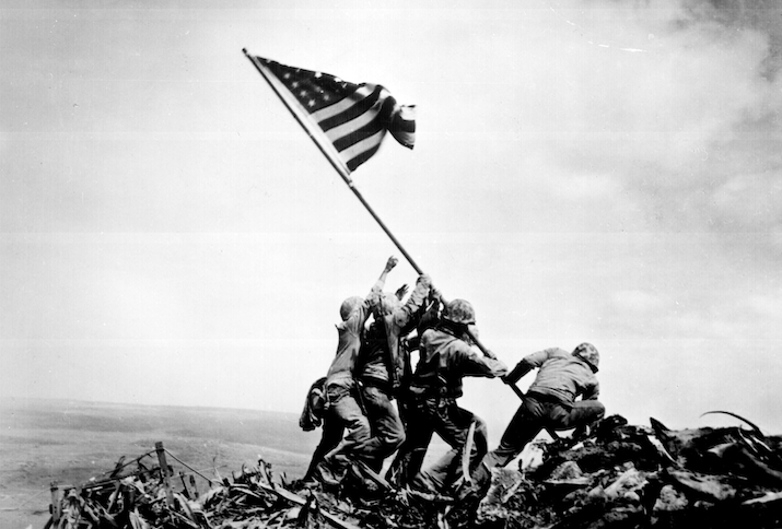 Die Schlacht um Iwo Jima im Frühjahr 1945 hält einen beinahe unverrückbaren Platz im kulturellen Gedächtnis der Vereinigten Staaten über den Zweiten Weltkrieg inne; diese erste Eroberung japanischen Territoriums steht für den Anfang vom Ende des Kriegs im Pazifik wie die die Landung in der Normandie den Beginn der Befreiung Europas indiziert. Und von Iwo Jima stammt das – zumindest aus US-Perspektive vielleicht berühmteste Foto des Kriegs, aufgenommen vom Kriegsfotografen Joe Rosenthal, auf dem eine Gruppe Marineinfanteristen das Sternenbanner auf dem Berg Suribachi hisst. Jost Dülffer hat kürzlich in einem sehr lesenswerten Beitrag die Enstehungs- und Wirkungsgeschichte dieser Ikone nachgezeichnet.[1] Dabei sind mehrere Aspekte bedeutsam, die auch für Eastwoods Film zentral sind: Erstens der Umstand, dass der auf diesem Bild zu sehende Akt gestellt war und dieser Szene eine erste Flaggenhissung durch zum Teil unterschiedliche Personen voranging; zweitens dass dieser Moment keinesfalls den Sieg der USTruppen und die Einnahme der Insel markierte, sondern eine geplante PR-Aktion am vierten Kampftag einer insgesamt 36 Tage andauernden Invasion war; und schließlich dass besagtes Foto und die darauf gezeigten Marines unmittelbar nach den Ereignissen und in großem Stil zu propagandistischen Zwecken eingespannt wurden. Schon kurze Zeit nach der Aufnahme war Rosenthals Foto in den USA beinahe omnipräsent; es wurde hunderte Male in der Presse abgedruckt, war auf Briefmarken und Plakaten zu sehen, die Darstellung wurde überlebensgroß als Plastik nachgebildet. Die Flaggenhissung auf Iwo Jima war das zentrale Bildmotiv für die siebte und letzte Kampagne zum Verkauf von Kriegsanleihen.