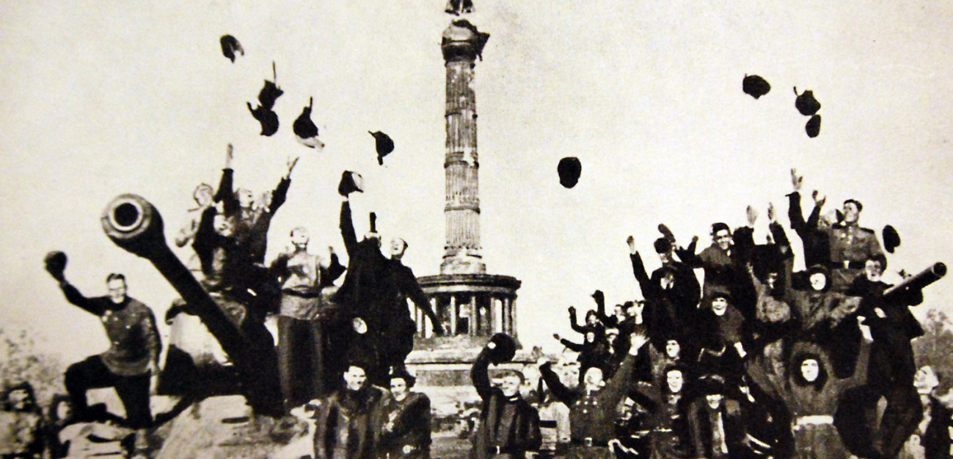 Der Film beginnt mit einer Titelsequenz ganz im Stil der Fernsehmagazine Kluges.[17] Fotografien, militärische Landkarten und historische Filmbilder, „Eindrücke“ vom 8. Mai 1945, werden zu den Titeln (in der markanten Schwarz-Weiß-Typographie Kluges) montiert und mit avantgardistischer Musik unterlegt. Darauf folgt im Charakter einer konventionellen historischen Fernseh-Dokumentation eine Minute mit bewegten Schwarz-Weiß-Aufnahmen von letzten Gefechten und kapitulierenden deutschen Truppen, kommentiert von einem Sprecher aus dem Off. Inhaltlich direkt daran anschließend folgt eine Text-Bild-Musik-Montage Kluges, eine typographisch aufbereitete, anekdotisch-dokumentarische Erzählung aus dem Buch Die Lücke, die der Teufel läßt[18] über einen deutschen Panzerverband, der im letzten Kriegsmonat von mehreren Kommandanten aus Hoffnungslosigkeit im Stich gelassen wird, unterlegt mit der Musik eines Streichquartetts und atmosphärischen Raumgeräuschen. Eine weitere kurze dokumentarische Sequenz leitet über zum ersten Interview des Films: Helge Schneider, mit Pilotenhaube und Trompete, spricht in einem improvisierten Fake-Gespräch mit Alexander Kluge (der aus dem Off zu hören ist) über den bevorstehenden Testflug mit der NS-Wunderwaffe „Natter“. Im harten Kontrast dazu steht der erste Beitrag Gabriel Heims, ein Interview mit Paul Jenni, der den 8. Mai 1945 in der Schweizer Armee erlebte und von seinen Eindrücken berichtet, danach wieder ein Schnitt zur Fortsetzung des Gesprächs mit Helge Schneider.
