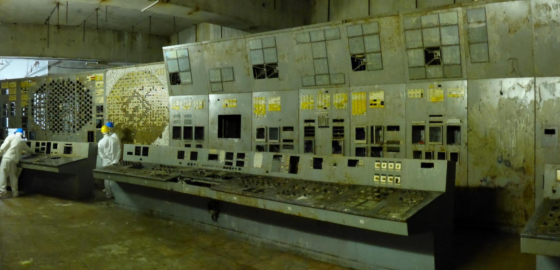 Selbstverständlich steht im Mittelpunkt der Sperrzone der explodierte Reaktor 4, der seit diesem Jahr unter dem neuen, zweiten Sarkophag ruht. Wüsste man es nicht besser, könnte diese postmoderne, extrem leichtwirkende Stahlkonstruktion, in dem sich der Himmel spiegelt, auch als Museumsbau für moderne Kunst durchgehen. Der übliche Rundgang führt über den Kontrollraum des Reaktors 3, der 2000 auf Druck der EU stillgelegt wurde, bis hin zu einem maßstabsgerechten Nachbau des havarierten Reaktors 4, Lunch inklusive. Aber seit Oktober kann auch der Kontrollraum des explodierten Reaktors 4 unter dem Sarkophag besichtigt werden. Was in Kontrollraum 3 wie gerade verlassen erscheint – die im Halbrund angeordneten Kontrolltafeln für den Reaktor, das Kühlsystem und die Turbinen – ist im Kontrollraum 4 tatsächlich nur noch Zerstörung: Knöpfe, Schalter, Tafeln, alle schwer verstrahlt, wurden entfernt; die Konsolen sind nur noch durchlöchertes Metall. Der Fußboden klebt, da er mit einer Chemikalie überzogen wurde, die Radioaktivität bindet. Der Eindruck dieses Ortes ist beklemmend und strahlt Verheerung in jeder Hinsicht aus. Der AKW-Mitarbeiter erläutert, dass den Konstrukteur*innen und Ingenieur*innen damals nicht bekannt war, dass der Reaktor bei minimaler Leistungsstufe am instabilsten ist und das Einfahren der Bremsstäbe zunächst die Leistung sprunghaft ansteigen lässt, bevor es zu einer Drosselung der Kernreaktion kommen kann. Tschernobyl allgemein und der Kontrollraum 4 im Besonderen sind daher Orte, an denen wie wohl sonst nirgends die menschliche Hybris, die Naturgewalten absolut beherrschen zu können, zum Ausdruck kommt. Die Sowjetunion traf dies doppelt schwer, da sie sich als Land der Ingenieur*innen pries, die sich die Natur unterworfen hatten. Das Eingeständnis, dass weder die Technik unfehlbar noch die Natur kontrollierbar waren, trug entscheidend zum Zusammenbruch des Sowjetreichs 1991 bei.