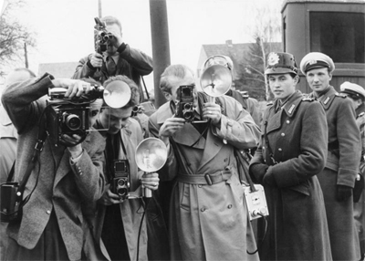 Hier gelangen Sie direkt auf die Seite des Projektes Visual-History und erhalten Hintergrundinformationen zum Foto: http://www.visual-history.de/index.php/File:Altglienicke_Fotografen_der_westlichen_Presse_%28Bundesarchiv%29.jpg