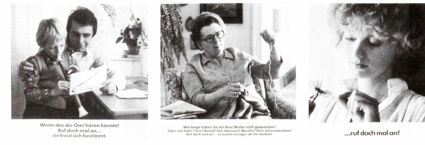 Einsam vor den Apparaten? In den 1970er Jahren schaltete die Werbeagentur Lintas, im Auftrag der Deutschen Bundespost, eine Kampagne, um das „Telefonbewusstsein“ zu heben und den Fernsprechverkehr auszubauen.