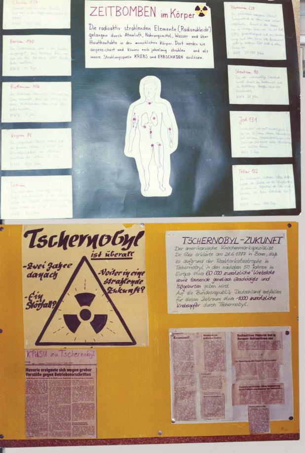Bei der Auseinandersetzung mit der Reaktorkatastrophe trat neben der Unterschiedlichkeit der Initiativen (direkter Angriff auf den Staat mittels scharfer Formulierungen vs. Aufbau einer breiteren Basis, die dann die Kritik gegen die Atomenergie mittragen würde)[5] vor allem eines hervor: Durch Tschernobyl zeigte sich in der Umwelt- und Friedensbewegung der DDR ein offensichtlicher und fühlbarer Impuls, sich nun gezielter und auch öffentlichkeitswirksamer mit Atomenergie auseinander zusetzen.